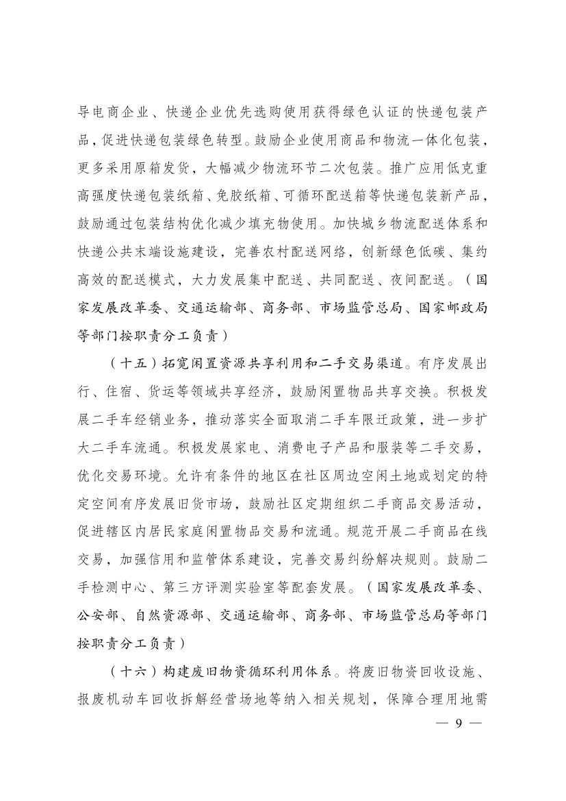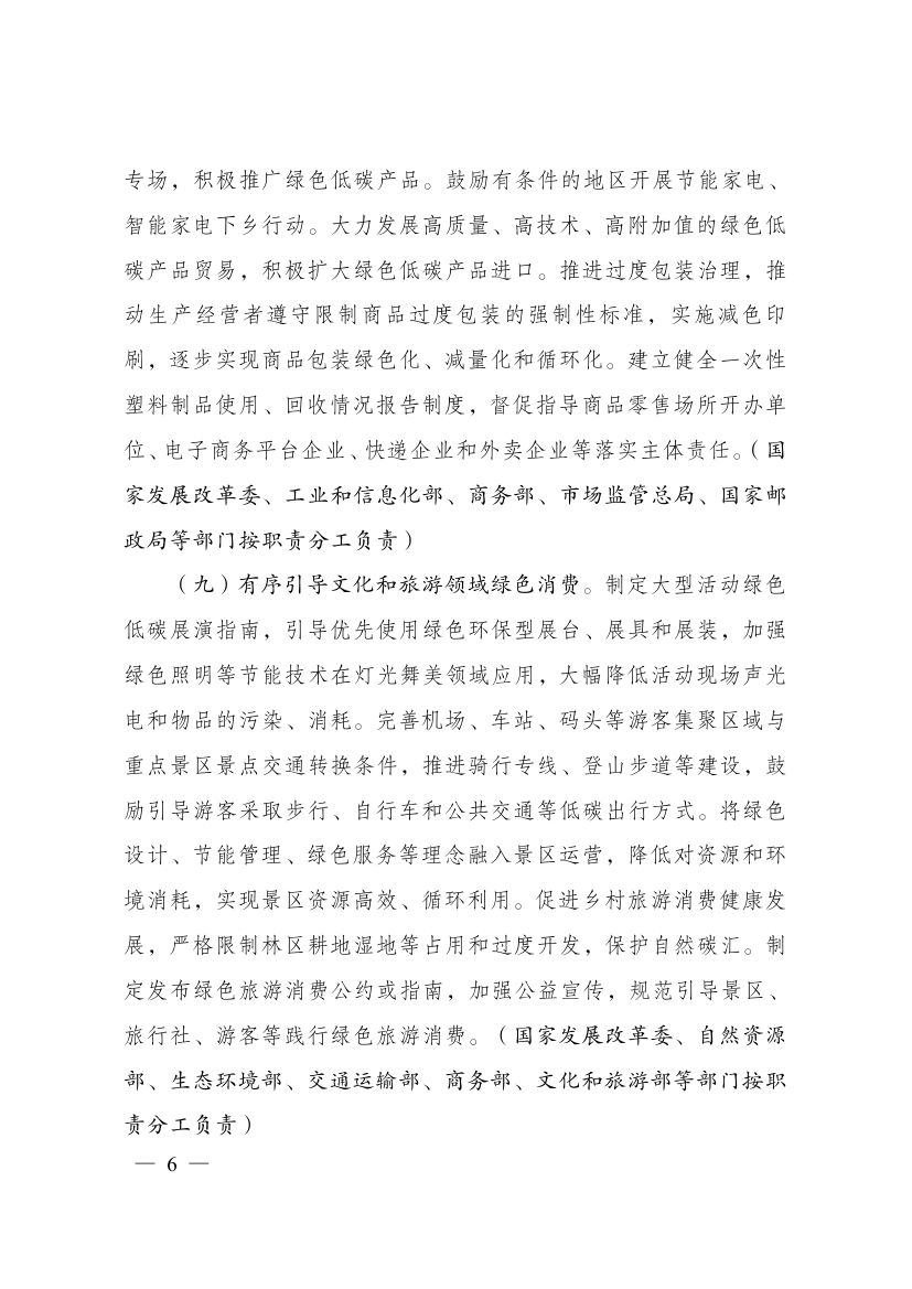 為深入貫徹落實《中共中央、國務(wù)院關(guān)于完整準(zhǔn)確全面貫徹新發(fā)展理念做好碳達(dá)峰碳中和工作的意見》和《2030年前碳達(dá)峰行動方案》有關(guān)要求,根據(jù)碳達(dá)峰碳中和工作領(lǐng)導(dǎo)小組部署安排,國家發(fā)展改革委、工業(yè)和信息化部、住房和城鄉(xiāng)建設(shè)部、商務(wù)部、市場監(jiān)管總局、國管局、中直管理局會同有關(guān)部門研究制定了《促進綠色消費實施方案》。現(xiàn)印發(fā)給你們,請結(jié)合實際,認(rèn)真抓好貫徹落實。