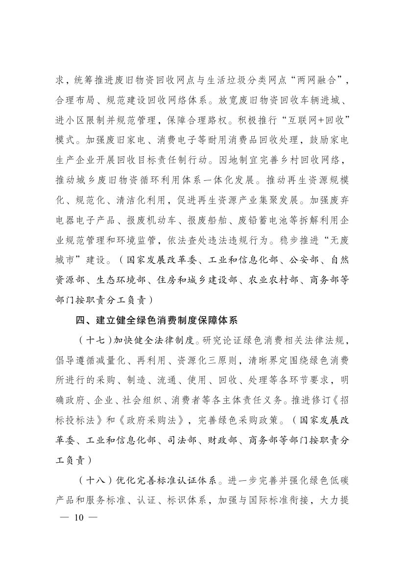 國家發(fā)展改革委等部門關(guān)于印發(fā)《促進綠色消費實施方案》的通知