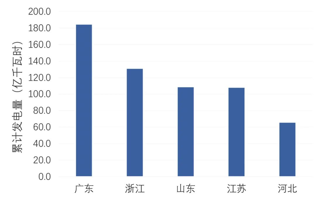 累計裝機容量排名前五的省份是廣東、山東、江蘇、浙江、黑龍江,分別是422萬千瓦、411萬千瓦、297萬千瓦、284萬千瓦、259萬千瓦;新增裝機容量排名前五的省份是,廣東、黑龍江、遼寧、廣西、河南,分別是45萬千瓦、37萬千瓦、33萬千瓦、26萬千瓦、24萬千瓦。